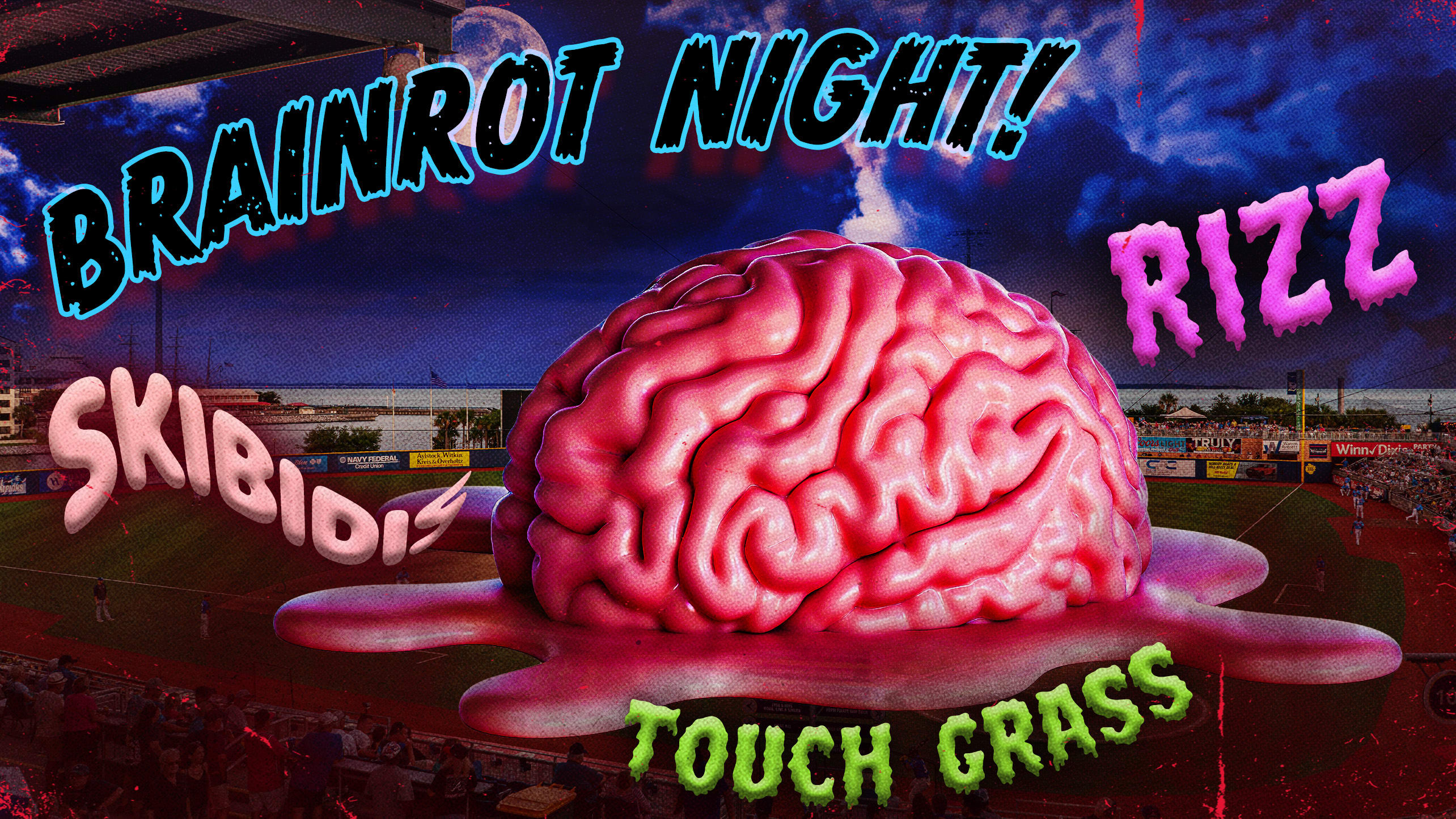 The Pensacola Blue Wahoos’ Brainrot Night at the ballpark inevitably became the subject of a viral social media video, but it’s just one of many “six seven” theme nights set for June 7 (6/7). Check out all the details.
